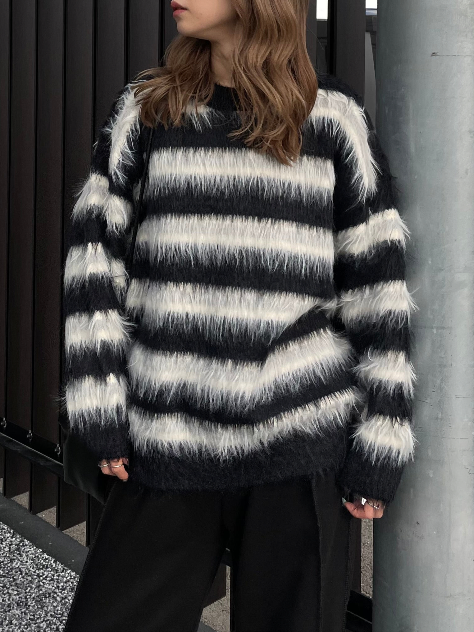 BORDER SHAGGY KNIT