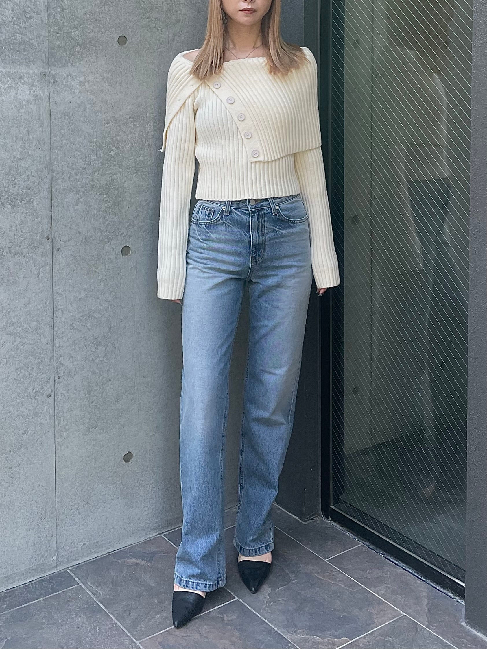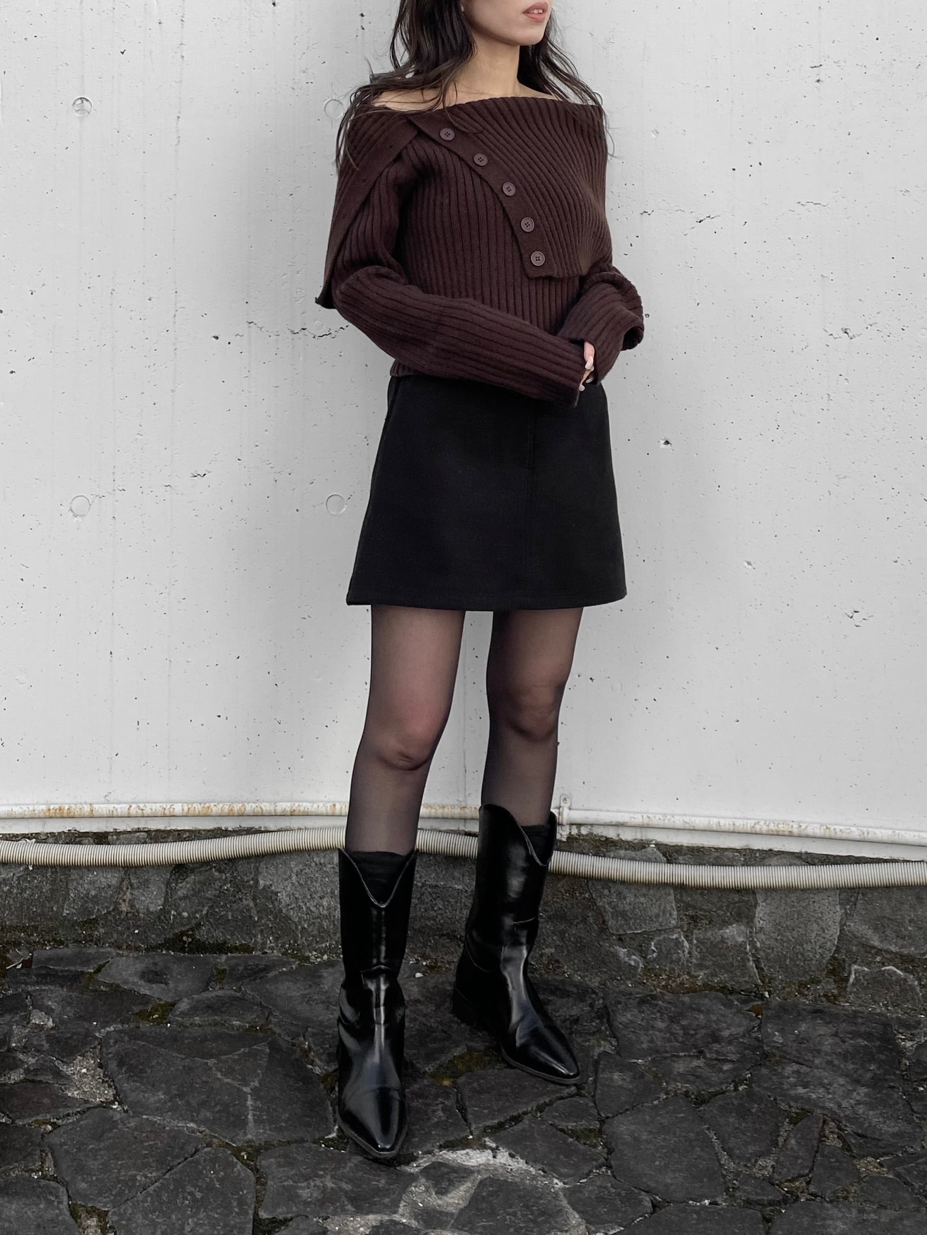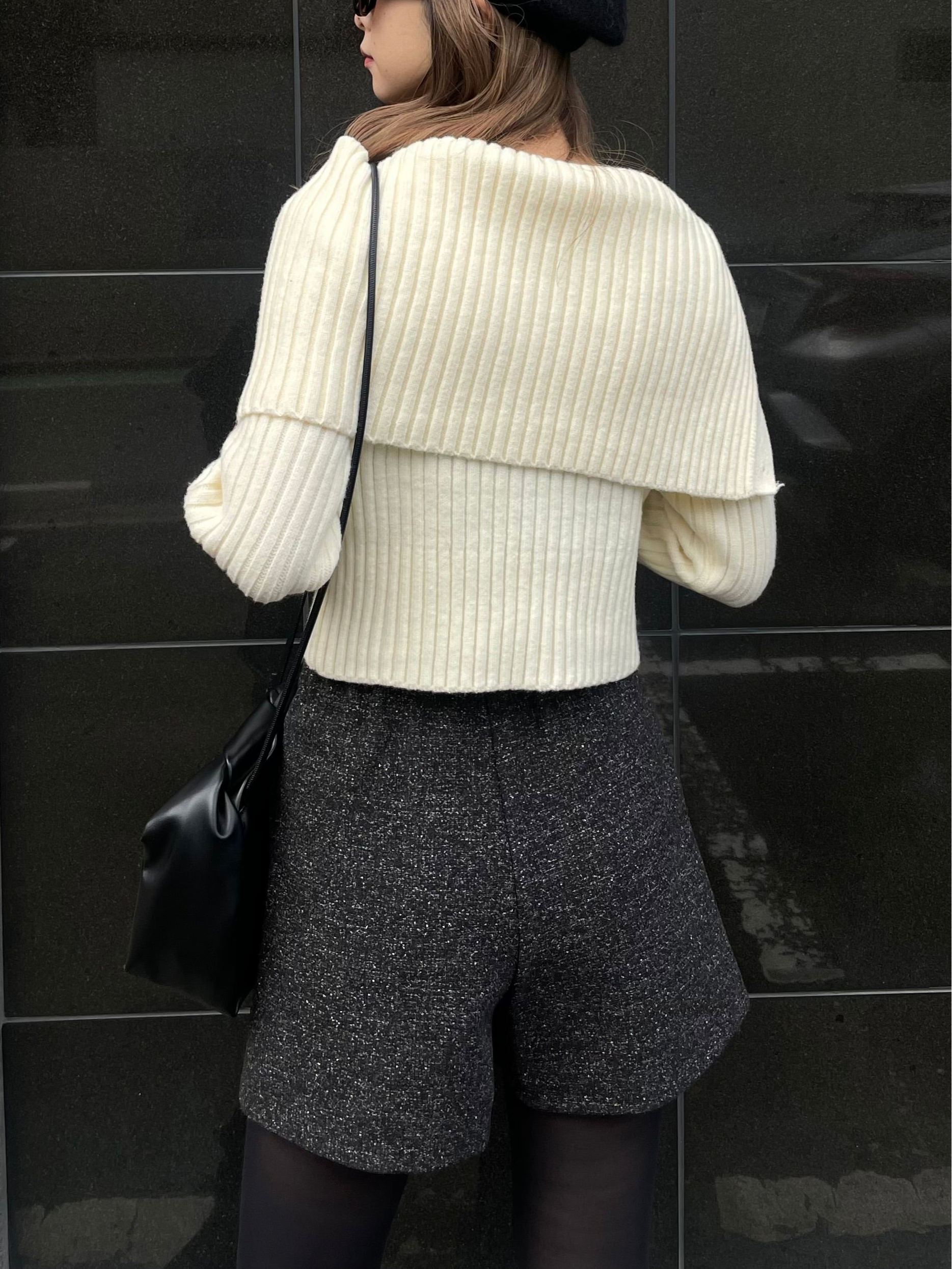 オフショルはアウターが着ずらい点が懸念されますが、こちらはボタンを閉めていただくとタートルネックになるためアウターも着用しやすくなっています。