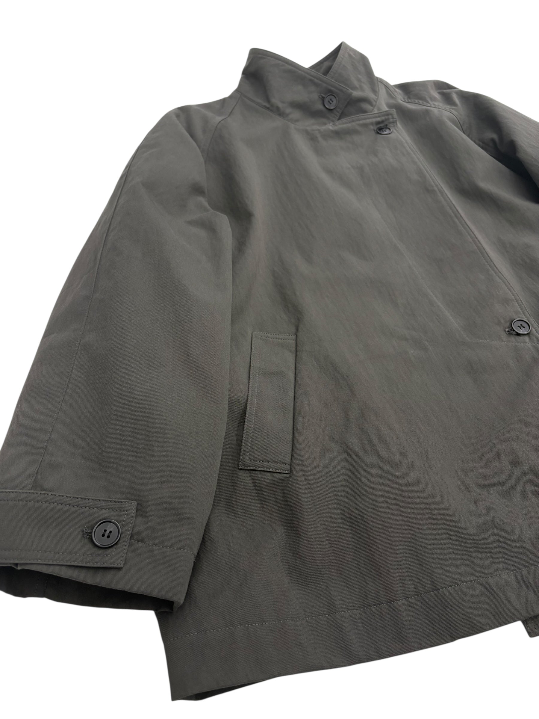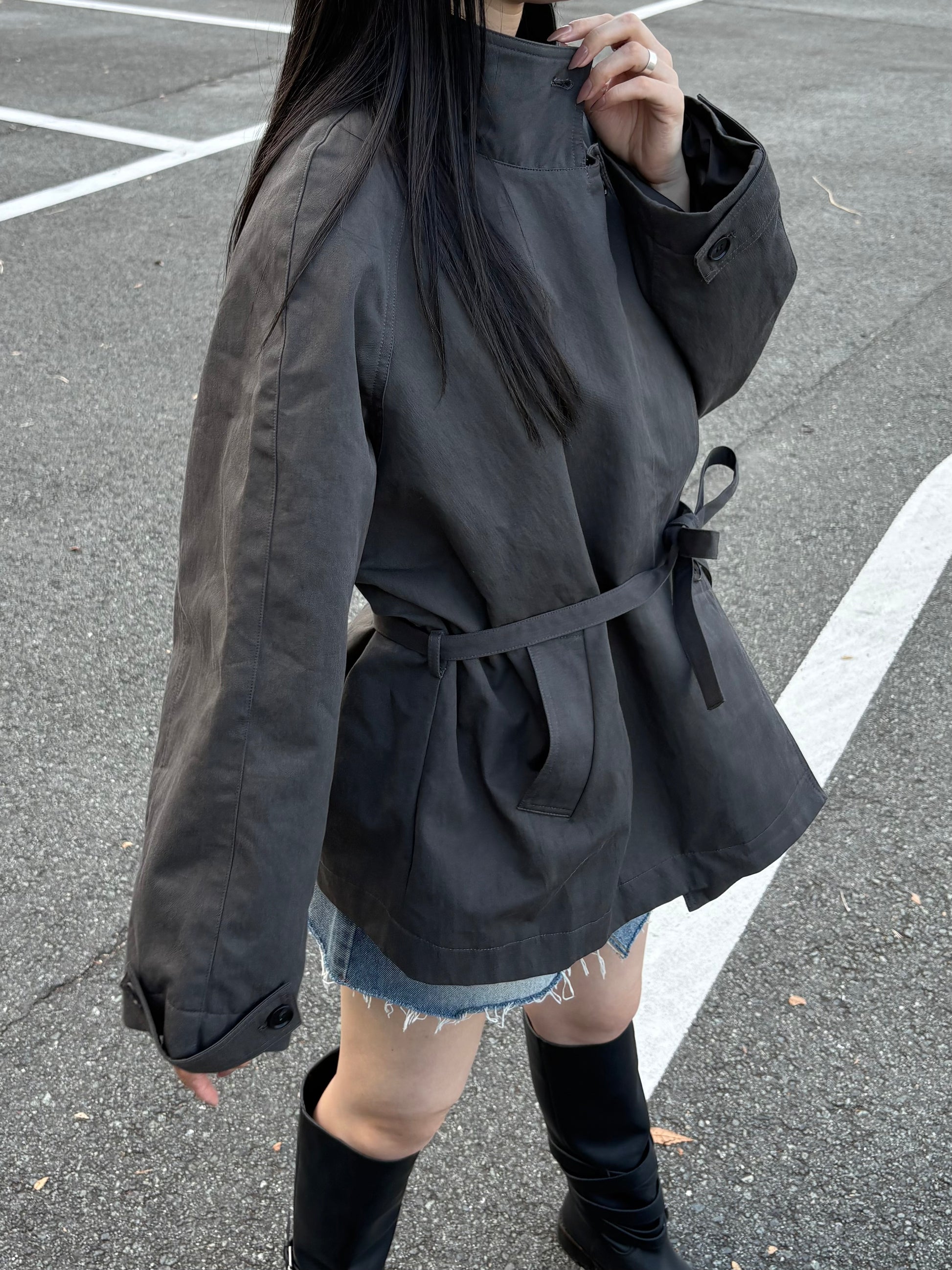 軽やかなのにしっかりした素材感で、シルエットが美しく決まるハーフトレンチコート。