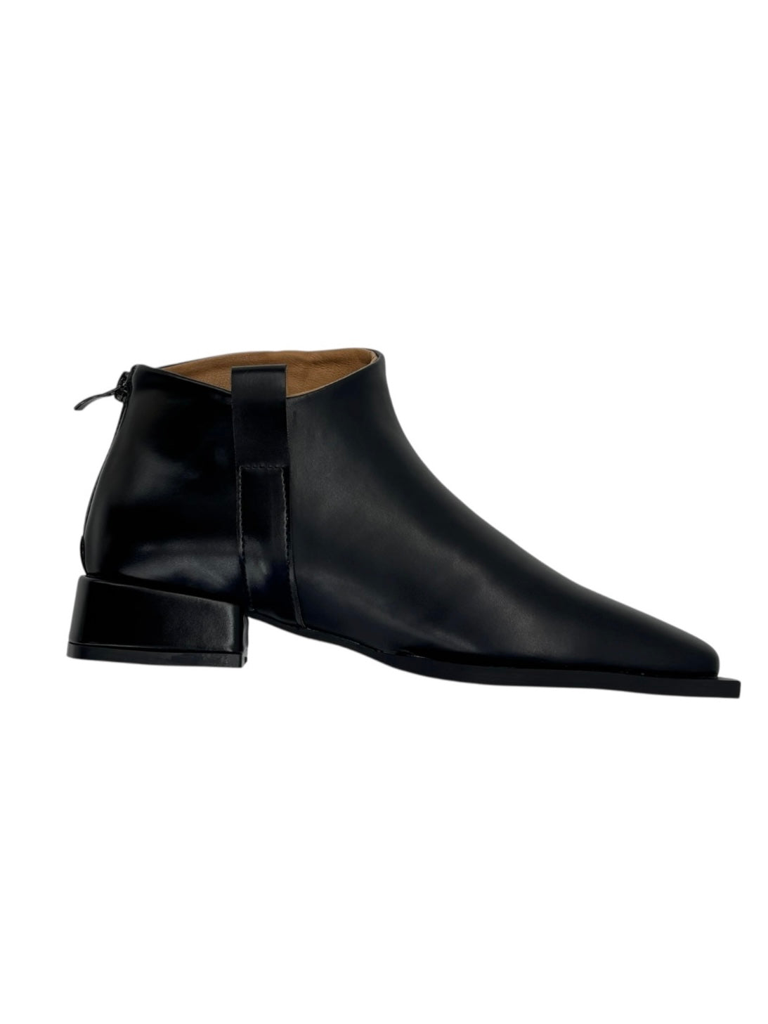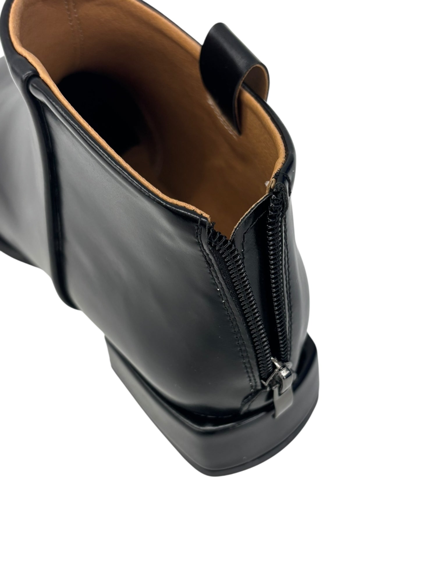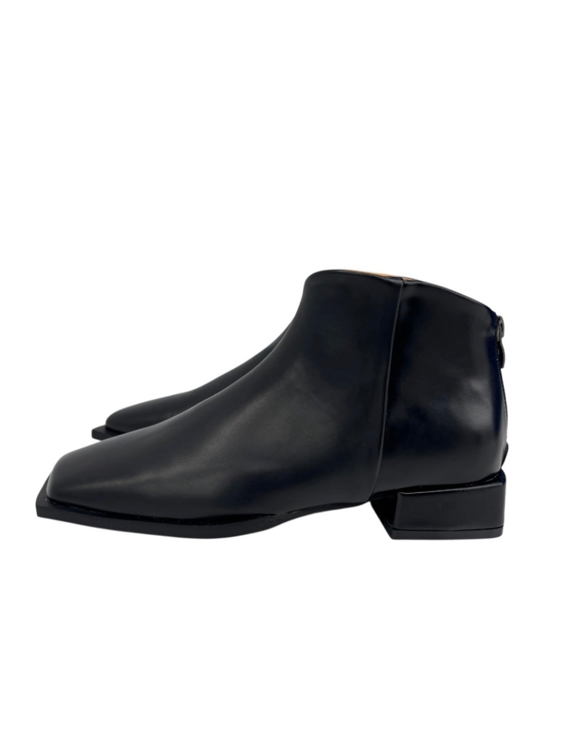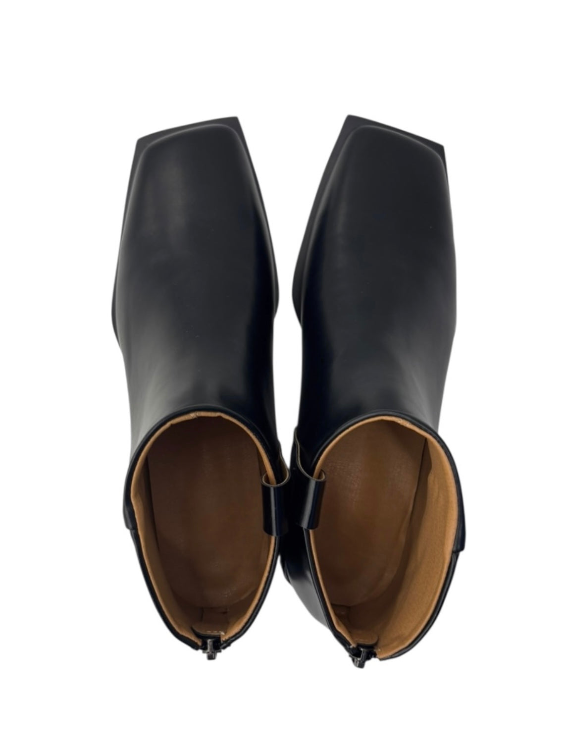 シンプルながら存在感のあるスクエアトゥデザインが魅力のブーティ。